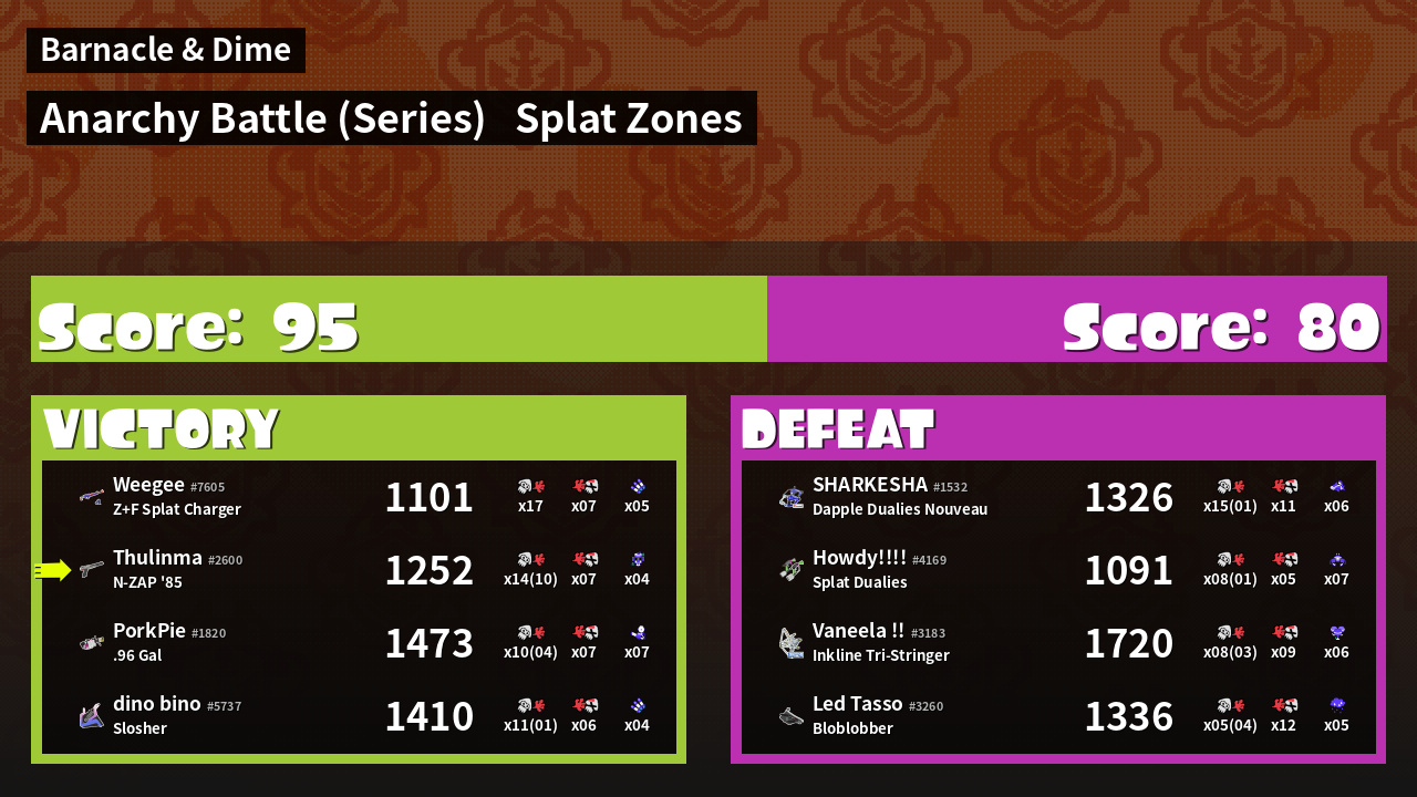 | Mode | Splat Zones - Anarchy Battle (Series) | ||