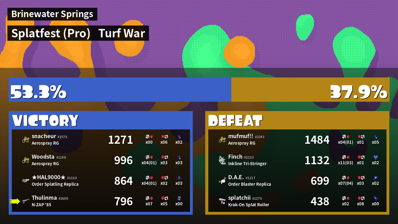 | Medals | #1 Overall Splatter #1 Popular Target #1 Enemy Splatter | ||