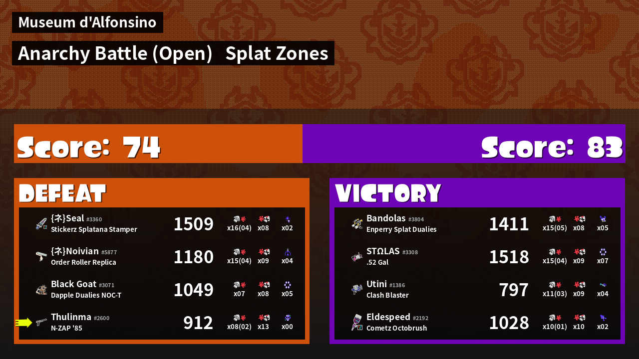 | Mode | Splat Zones - Anarchy Battle (Open) | ||