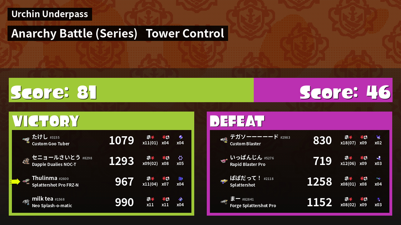 | Mode | Tower Control - Anarchy Battle (Series) | ||