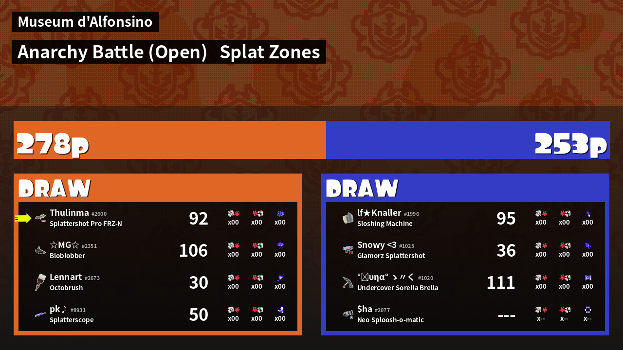 | Mode | Splat Zones - Anarchy Battle (Open) | ||