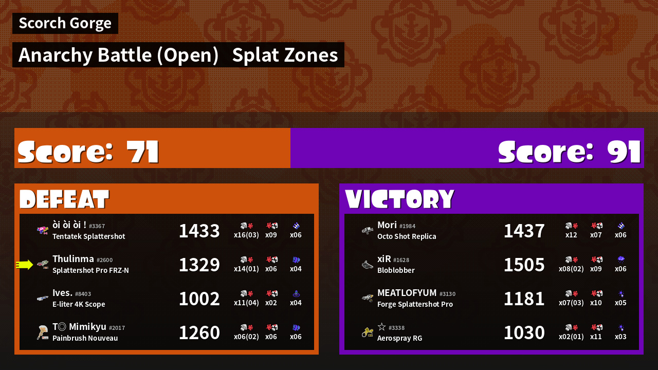 | Mode | Splat Zones - Anarchy Battle (Open) | ||