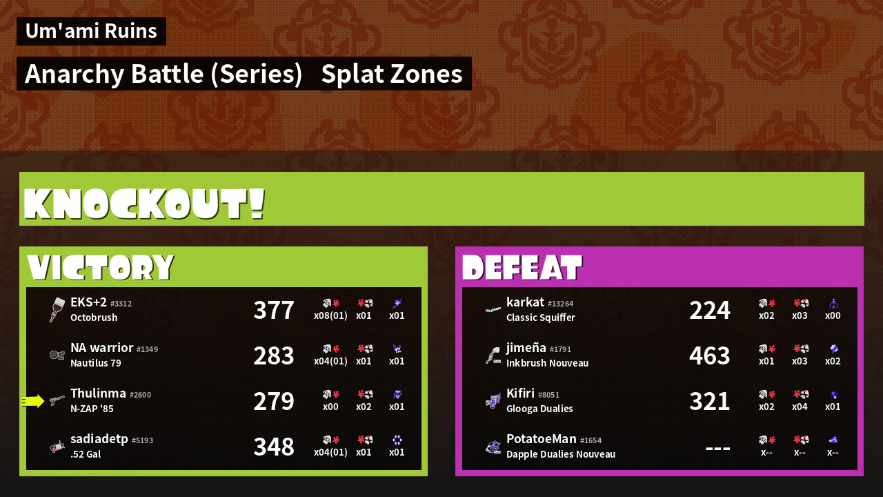 | Medals | #1 Splat Zone Inker #1 Super Jump Spot #1 Splat Zone Hero | ||