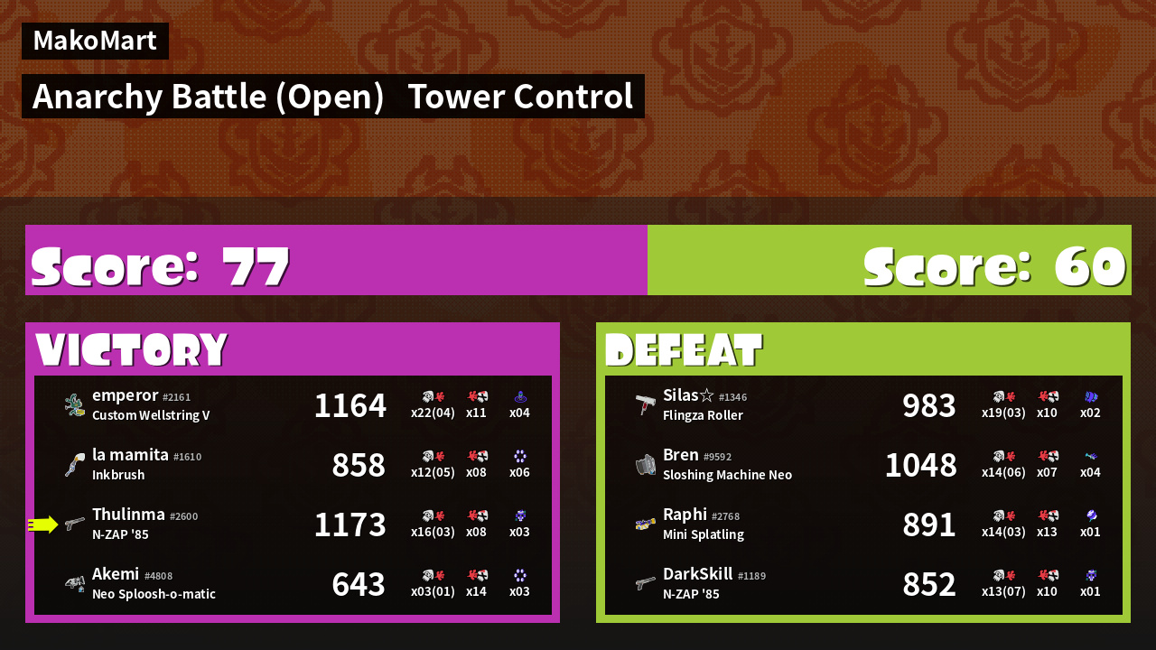 | Mode | Tower Control - Anarchy Battle (Open) | ||