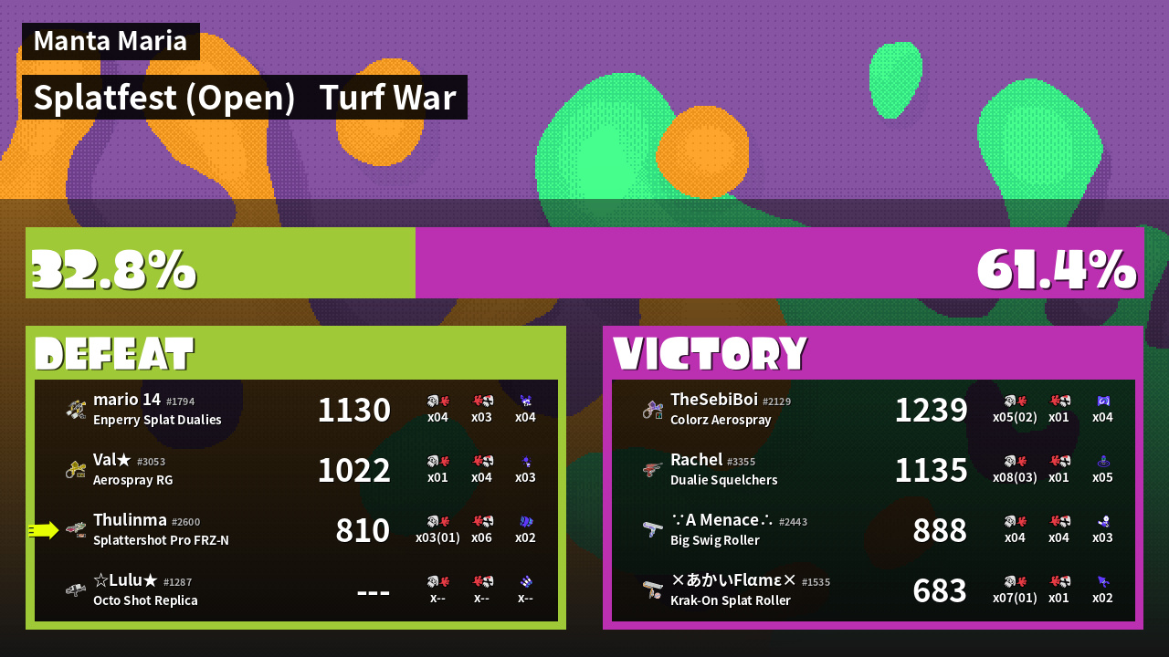 Kills / Deaths | 2 + 1 / 6 < Kill Ratio: 0.33 | ||