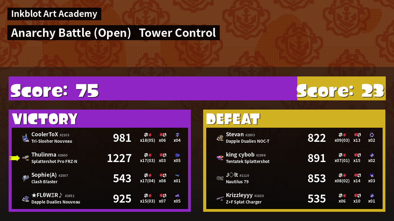 | Mode | Tower Control - Anarchy Battle (Open) | ||