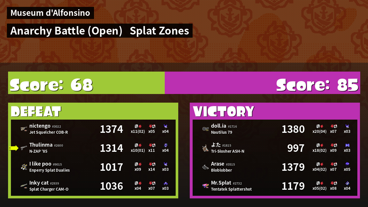 | Mode | Splat Zones - Anarchy Battle (Open) | ||