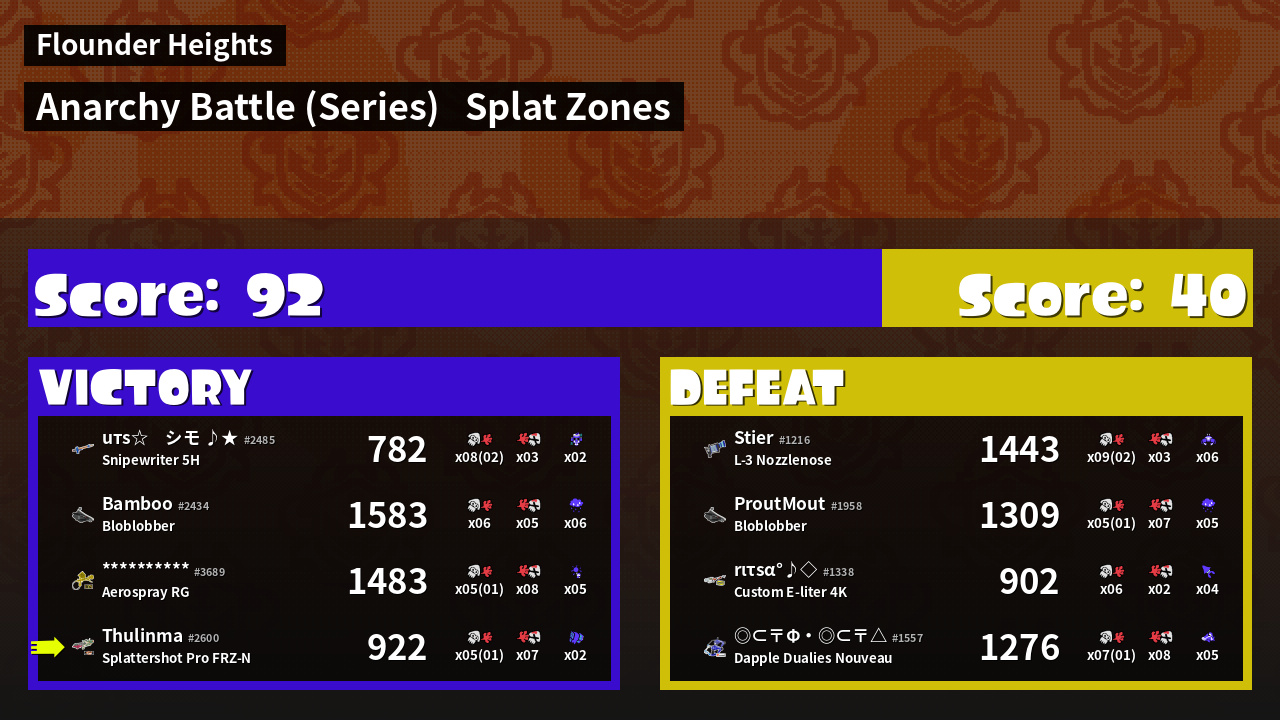 | Mode | Splat Zones - Anarchy Battle (Series) | ||