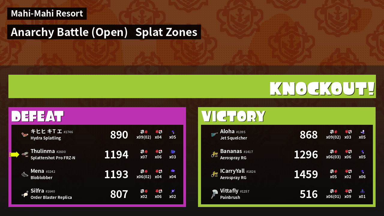 | Mode | Splat Zones - Anarchy Battle (Open) | ||