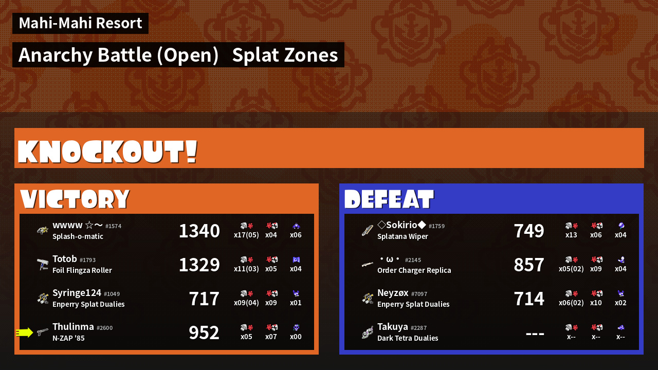 | Mode | Splat Zones - Anarchy Battle (Open) | ||