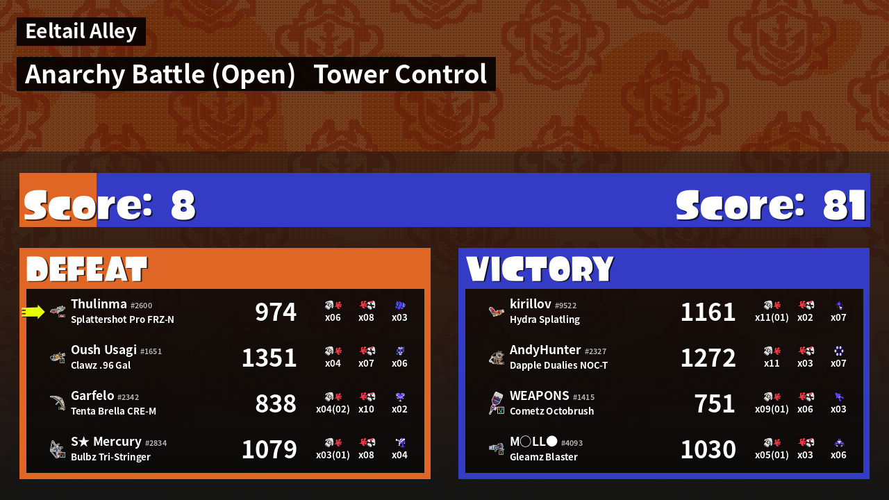 Kills / Deaths | 6 + 0 / 8 < Kill Ratio: 0.75 | ||