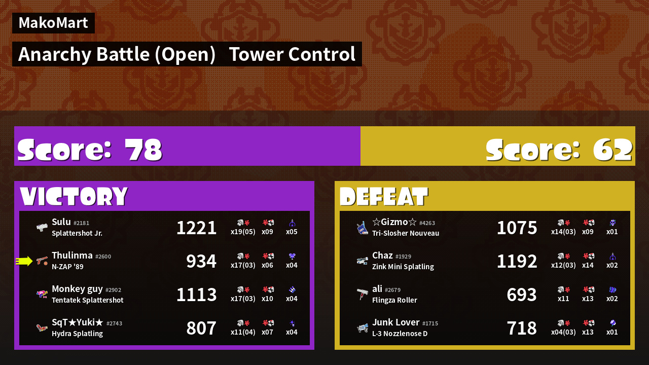 Kills / Deaths | 14 + 3 / 6 > Kill Ratio: 2.33 | ||
