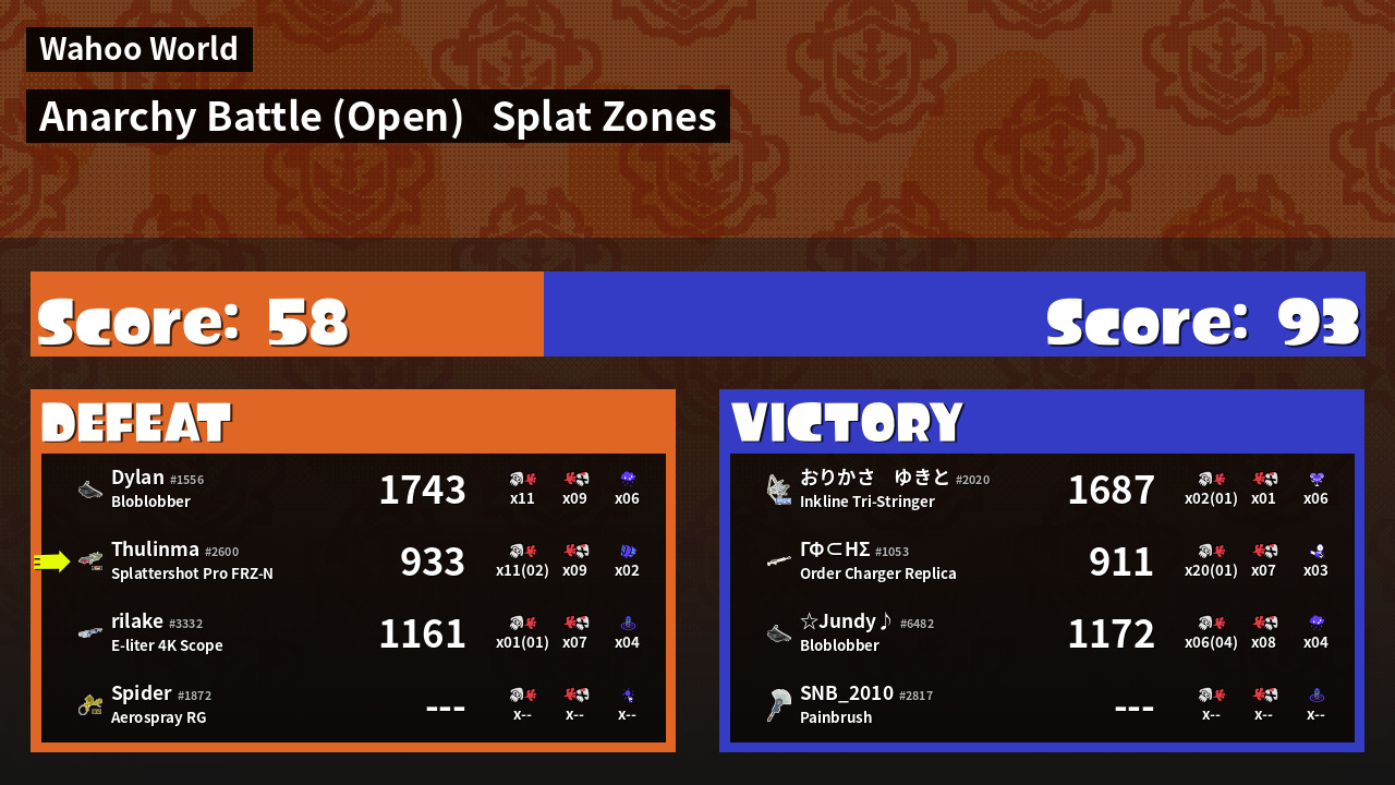 | Mode | Splat Zones - Anarchy Battle (Open) | ||