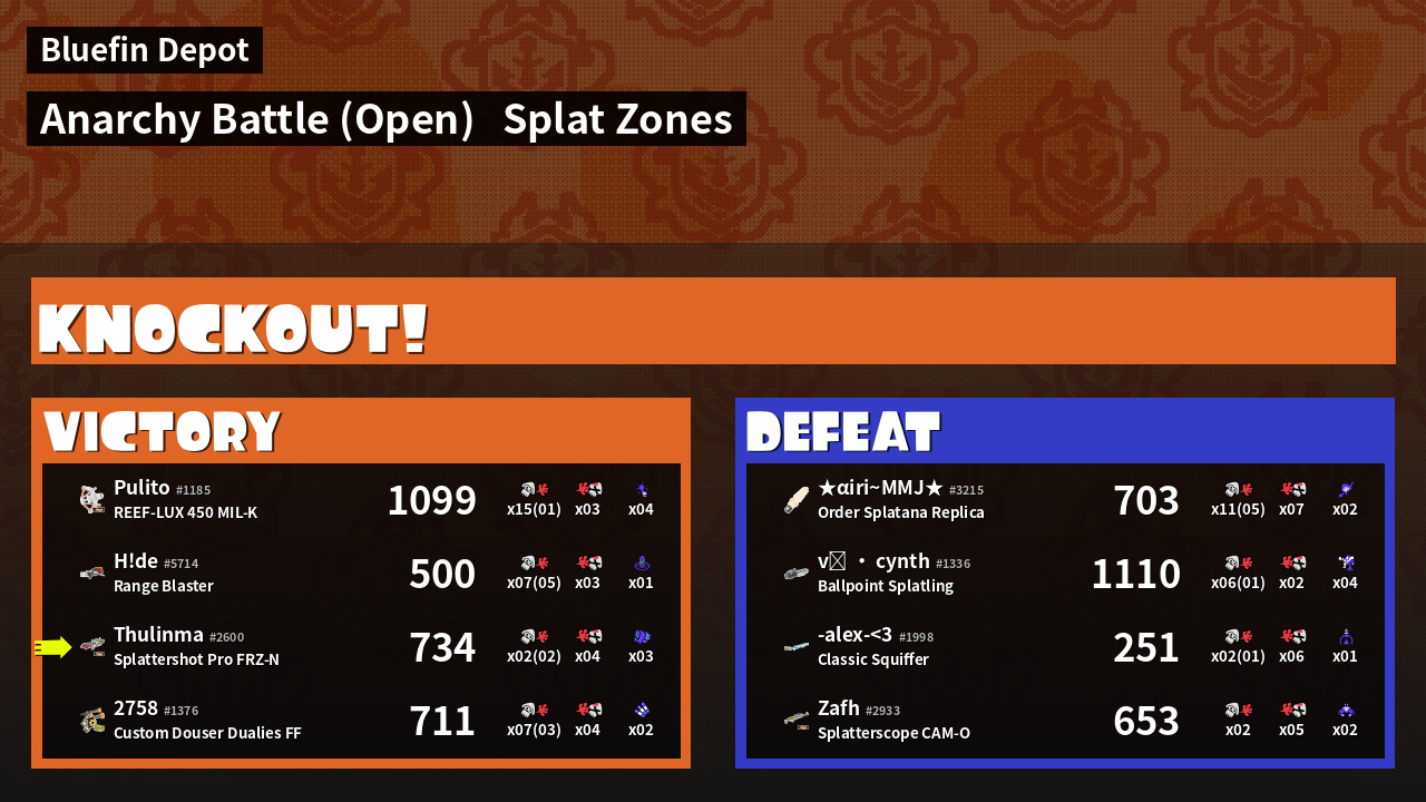 | Mode | Splat Zones - Anarchy Battle (Open) | ||