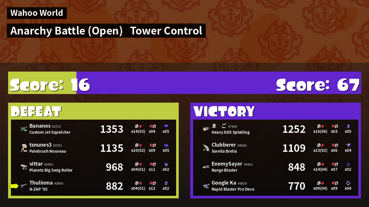 | Mode | Tower Control - Anarchy Battle (Open) | ||