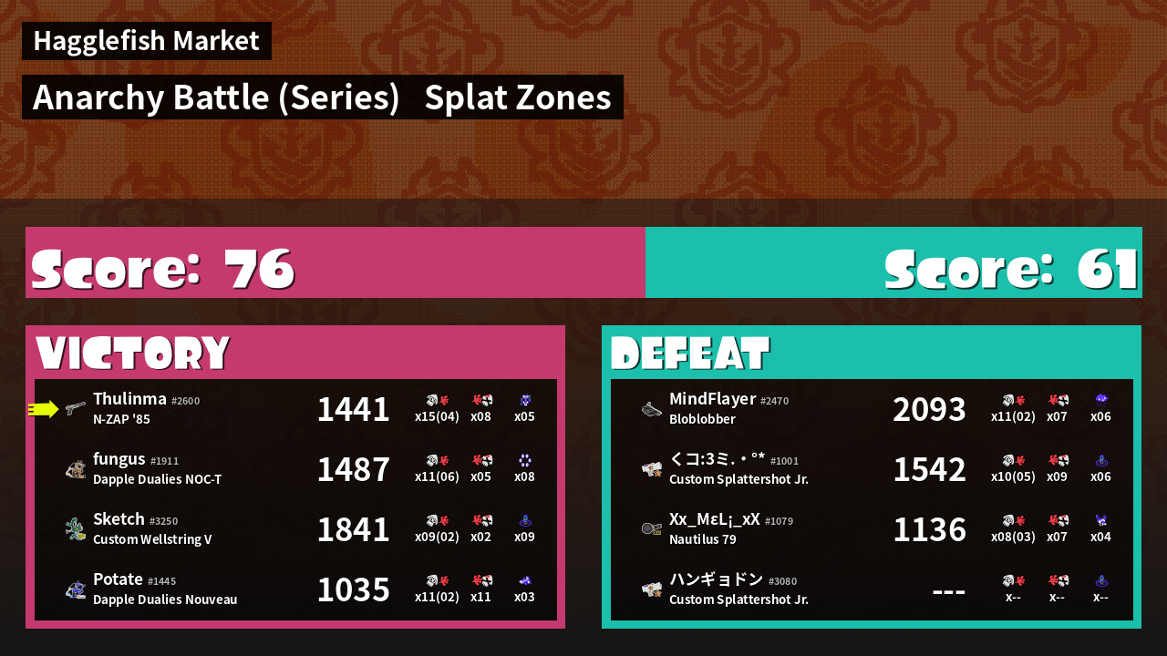 | Mode | Splat Zones - Anarchy Battle (Series) | ||