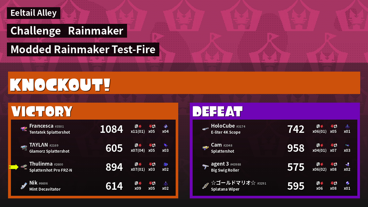 Kills / Deaths | 6 + 1 / 3 > Kill Ratio: 2.00 | ||