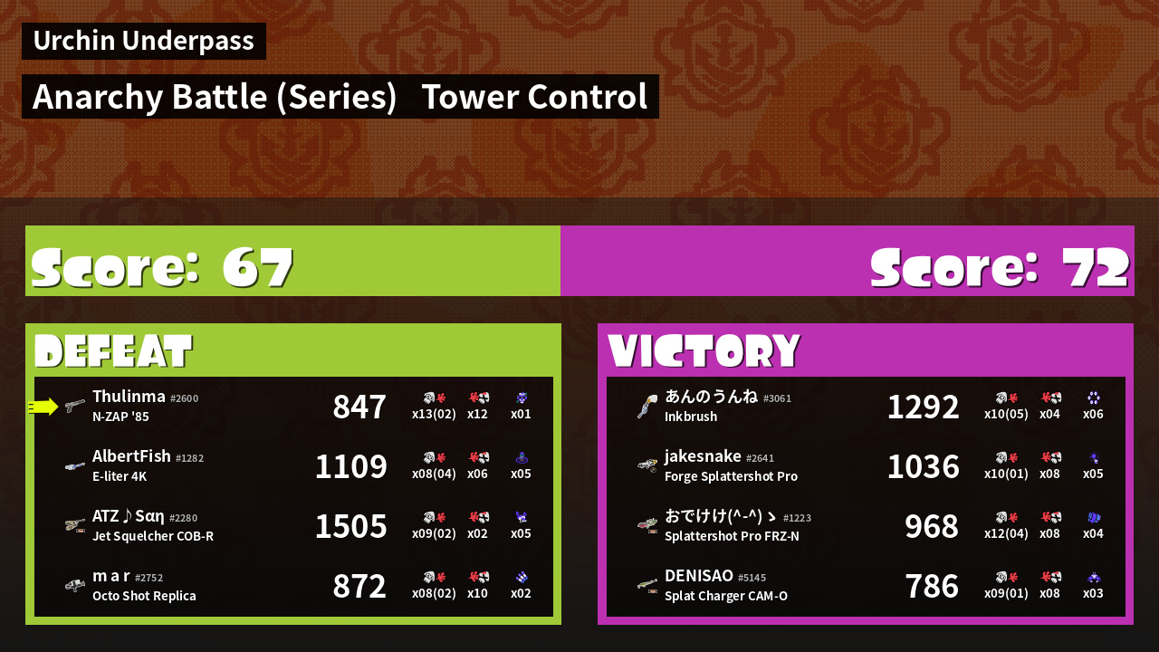 | Medals | #1 Overall Splatter Record-Score Setter #1 Enemy Splatter | ||
