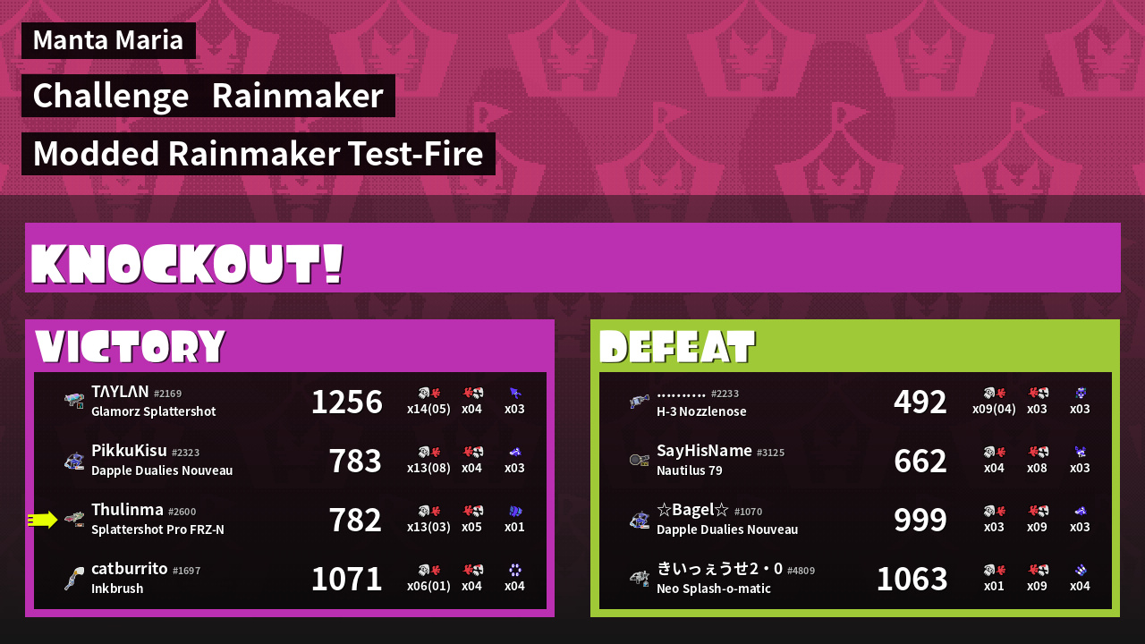 Kills / Deaths | 10 + 3 / 5 > Kill Ratio: 2.00 | ||