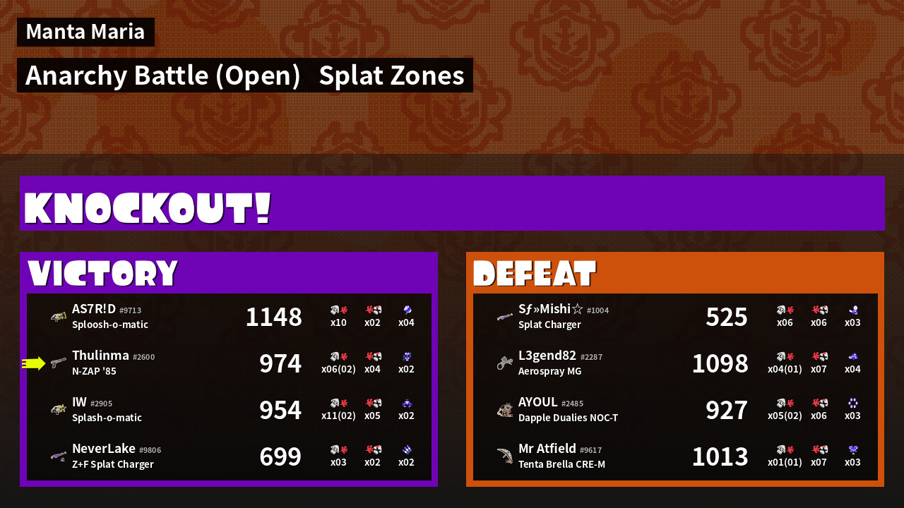 | Mode | Splat Zones - Anarchy Battle (Open) | ||