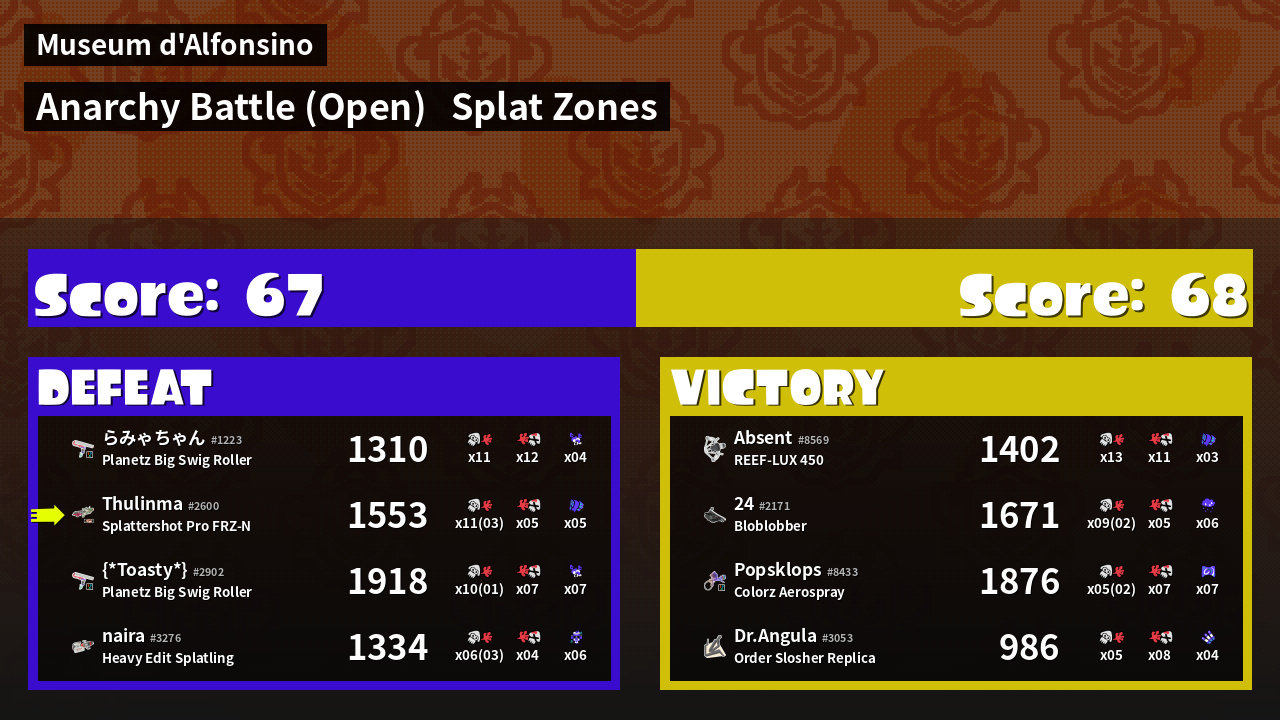 | Mode | Splat Zones - Anarchy Battle (Open) | ||