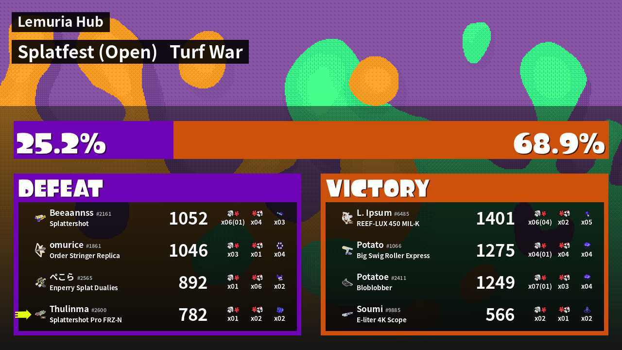 | Medals | #1 Damage Taker #1 Ink Consumer #2 Popular Target | ||