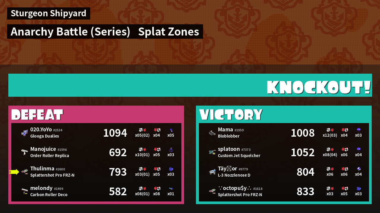 Name | Weapon | Inked | ![]() |