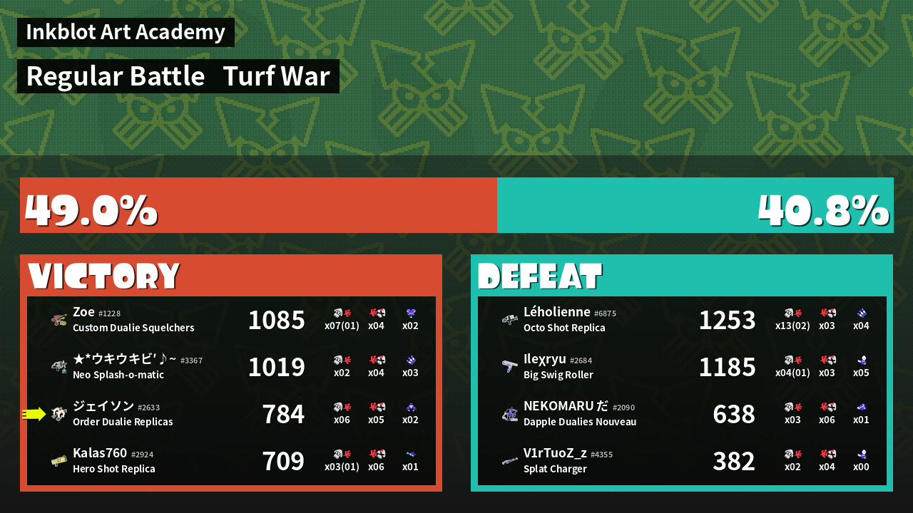 | Mode | Turf War - Regular Battle | ||