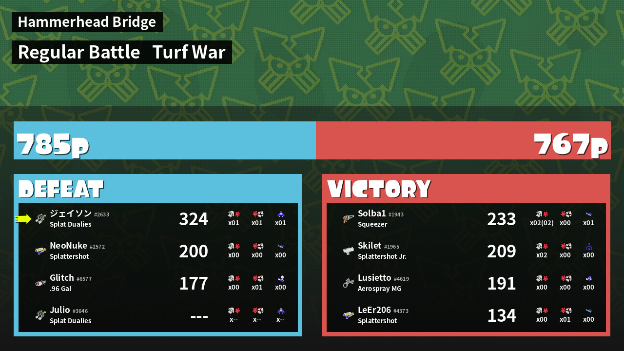 | Weapon | Splat Dualies ( Suction Bomb / Crab Tank) | ||