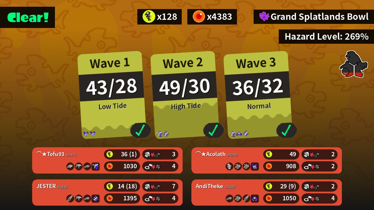 | Weapons | Grizzco Brella Grizzco Roller Grizzco Charger | Grizzco Stringer Grizzco Dualies Grizzco Dualies | Grizzco Charger Grizzco Dualies Grizzco Splatana | Grizzco Splatana Grizzco Roller Grizzco Charger |