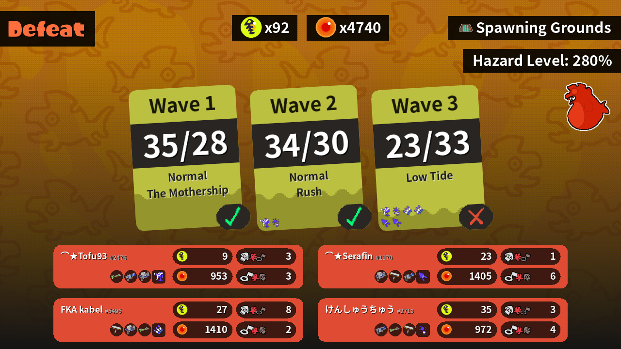 | Weapons | Bamboozler 14 Mk I L-3 Nozzlenose Clash Blaster | L-3 Nozzlenose Bamboozler 14 Mk I Carbon Roller | Carbon Roller Clash Blaster Bamboozler 14 Mk I | Clash Blaster Carbon Roller L-3 Nozzlenose |