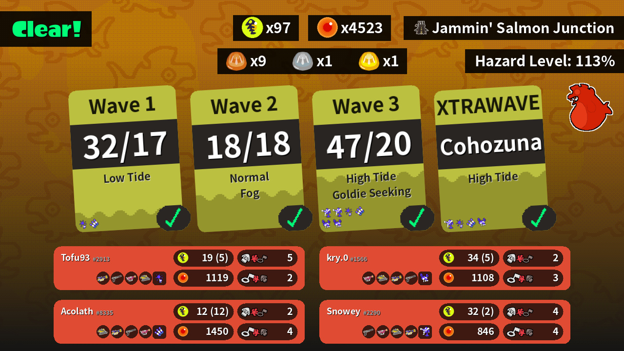 Boss Salmonid | 10 | 9 | 3 | 16 |
