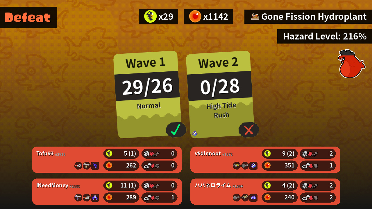 | Weapons | Goo Tuber Splat Roller | Splat Roller Goo Tuber | Splash-o-matic Nautilus 47 | Nautilus 47 Splash-o-matic |
