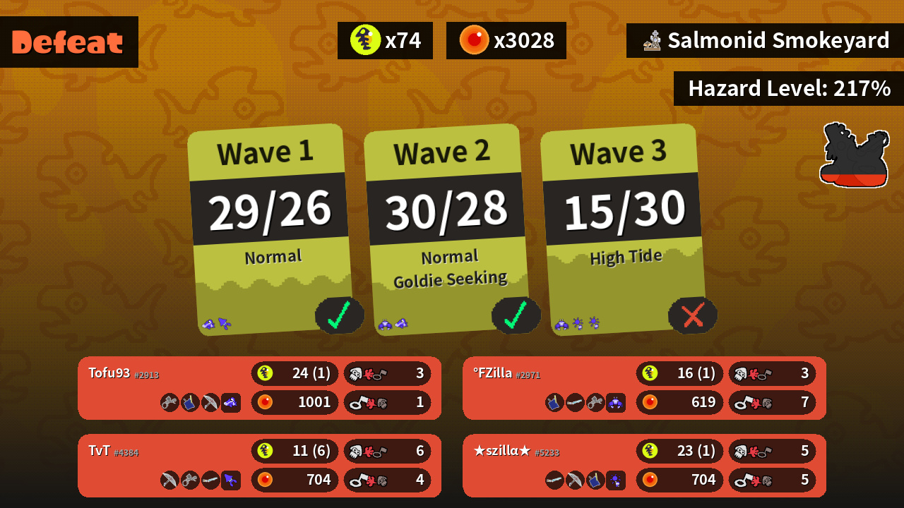 | Weapons | Aerospray MG Tri-Slosher Splat Brella | Classic Squiffer Splat Brella Tri-Slosher | Tri-Slosher Classic Squiffer Aerospray MG | Splat Brella Aerospray MG Classic Squiffer |