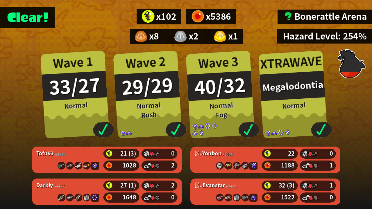 | Boss Salmonid | 19 | 13 | 23 | 16 |