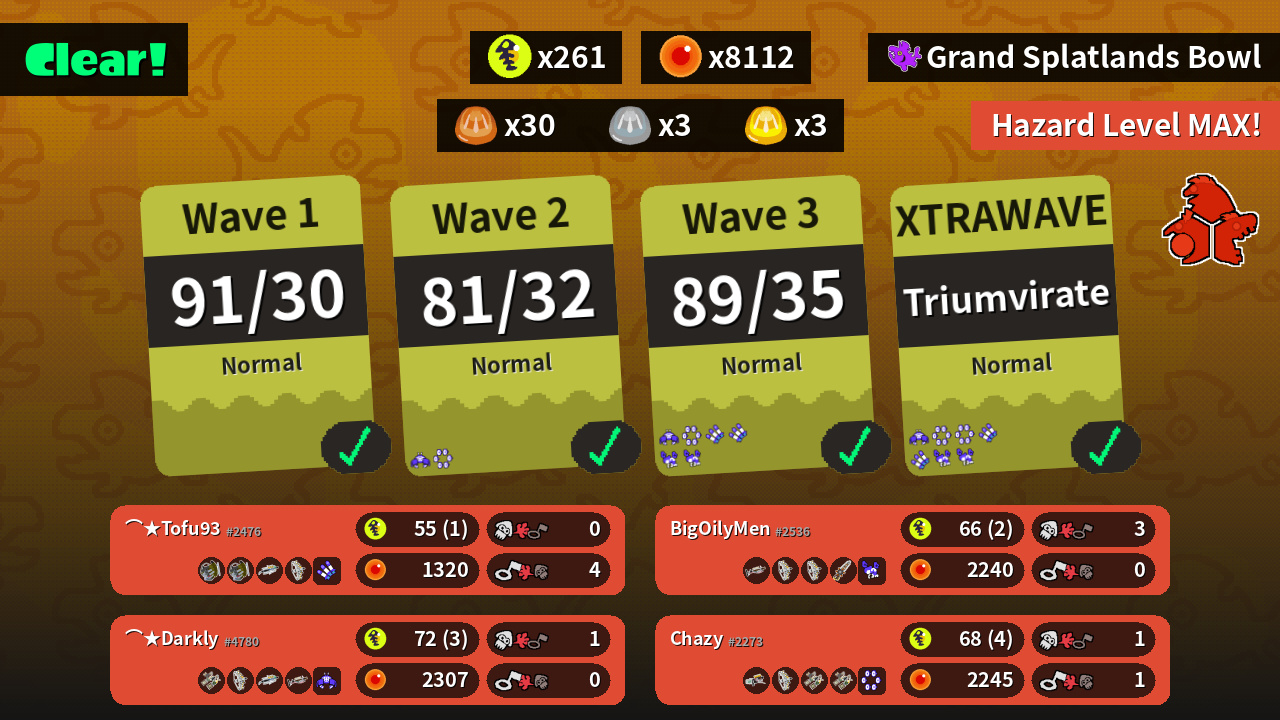 | Weapons | Grizzco Slosher Grizzco Slosher Grizzco Brella Grizzco Stringer | Grizzco Dualies Grizzco Stringer Grizzco Brella Grizzco Charger | Grizzco Blaster Grizzco Stringer Grizzco Dualies Grizzco Dualies | Grizzco Charger Grizzco Stringer Grizzco Stringer Grizzco Splatana |