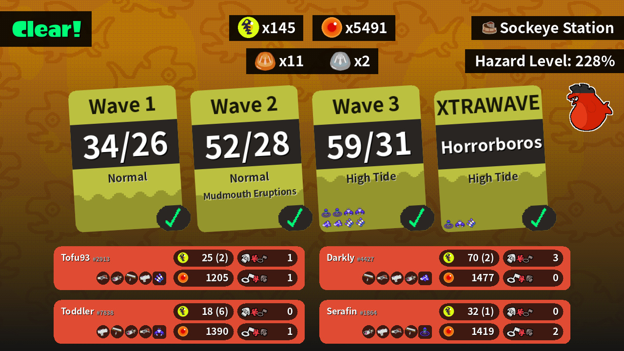| Boss Salmonid | 13 | 15 | 18 | 19 |