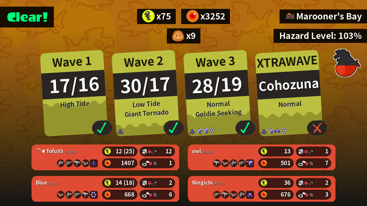 | Weapons | Aerospray MG Squeezer Dynamo Roller Hydra Splatling | Squeezer Dynamo Roller Hydra Splatling Aerospray MG | Hydra Splatling Aerospray MG Squeezer Dynamo Roller | Dynamo Roller Hydra Splatling Aerospray MG Squeezer |