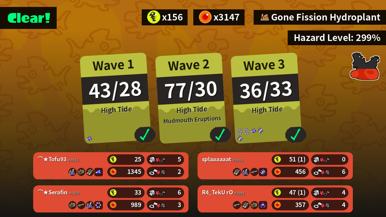 | Weapons | Slosher Explosher Splat Dualies | Splat Dualies Slosher Snipewriter 5H | Snipewriter 5H Splat Dualies Explosher | Explosher Snipewriter 5H Slosher |