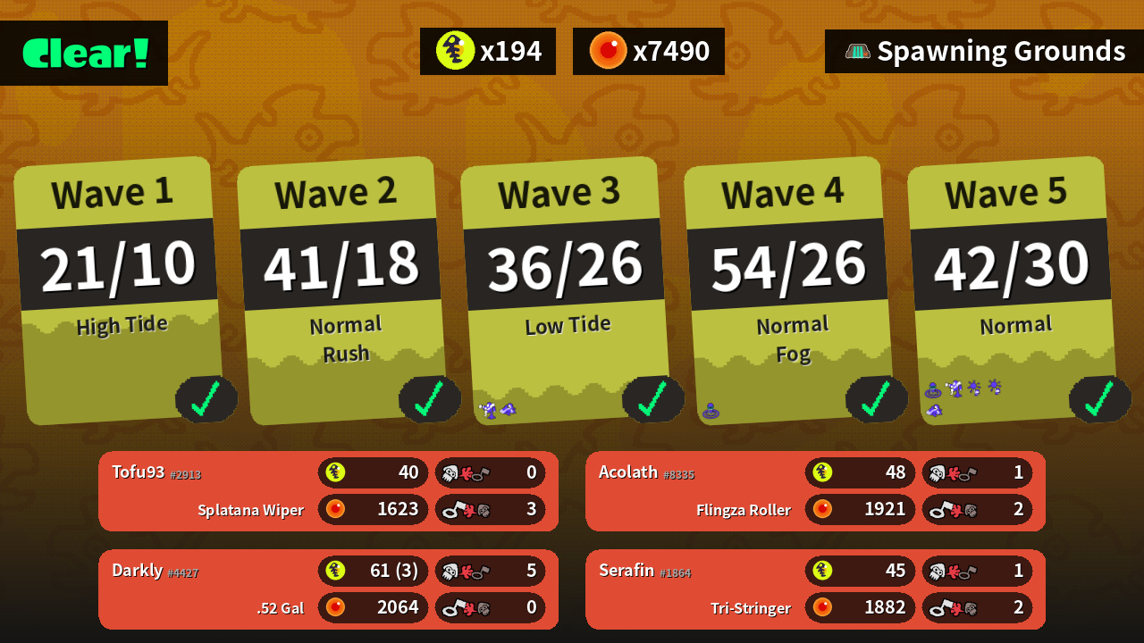 | Boss Salmonid | 13 | 30 | 18 | 29 |