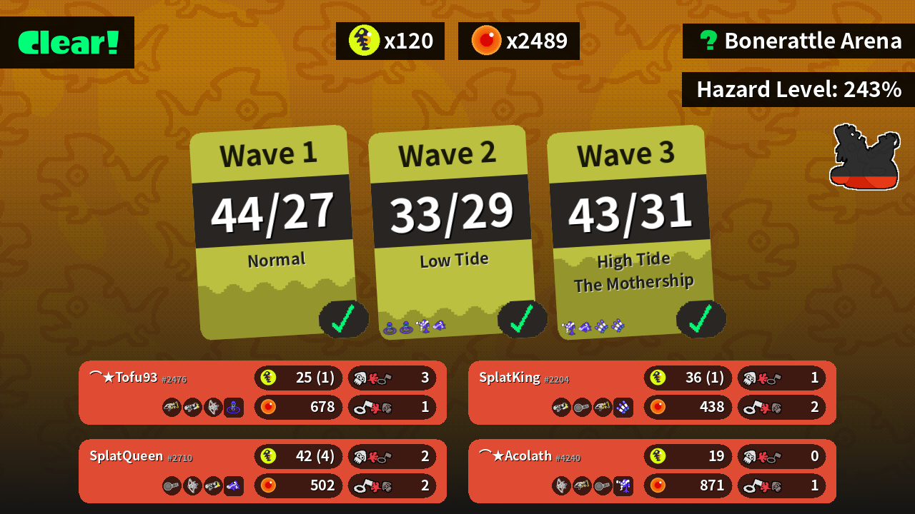 ⌒★Tofu93 | SplatQueen | SplatKing | ⌒★Acolath | |