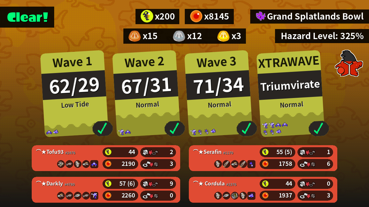 | Weapons | Grizzco Dualies Grizzco Charger Grizzco Stringer Grizzco Blaster | Grizzco Blaster Grizzco Charger Grizzco Brella Grizzco Charger | Grizzco Stringer Grizzco Splatana Grizzco Blaster Grizzco Splatana | Grizzco Stringer Grizzco Brella Grizzco Slosher Grizzco Stringer |