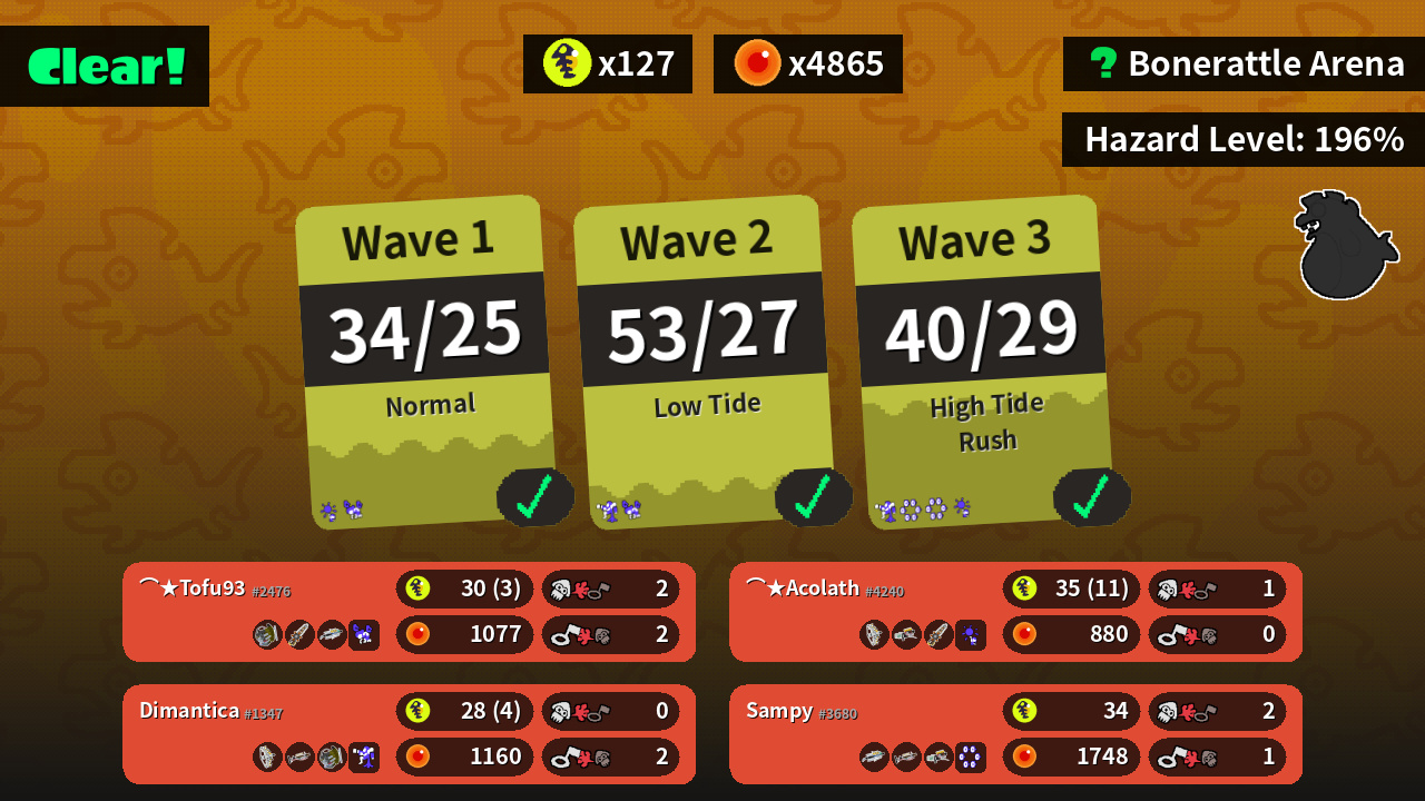 | Weapons | Grizzco Slosher Grizzco Splatana Grizzco Brella | Grizzco Stringer Grizzco Blaster Grizzco Splatana | Grizzco Brella Grizzco Charger Grizzco Blaster | Grizzco Stringer Grizzco Charger Grizzco Slosher |