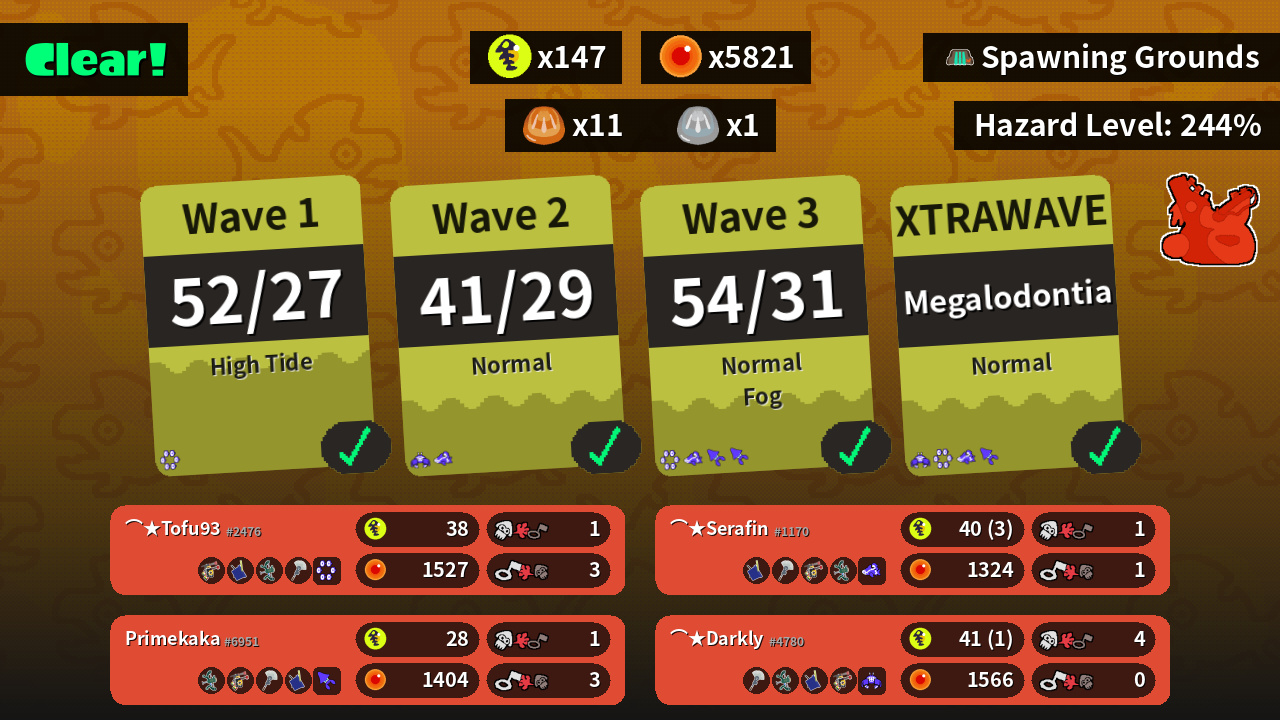 | Weapons | Douser Dualies FF Tri-Slosher Wellstring V Painbrush | Painbrush Wellstring V Tri-Slosher Douser Dualies FF | Tri-Slosher Painbrush Douser Dualies FF Wellstring V | Wellstring V Douser Dualies FF Painbrush Tri-Slosher |