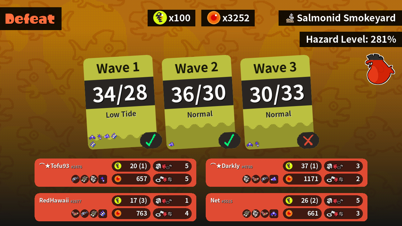 | Weapons | H-3 Nozzlenose Splat Dualies REEF-LUX 450 | REEF-LUX 450 Hydra Splatling H-3 Nozzlenose | Splat Dualies REEF-LUX 450 Hydra Splatling | Hydra Splatling H-3 Nozzlenose Splat Dualies |
