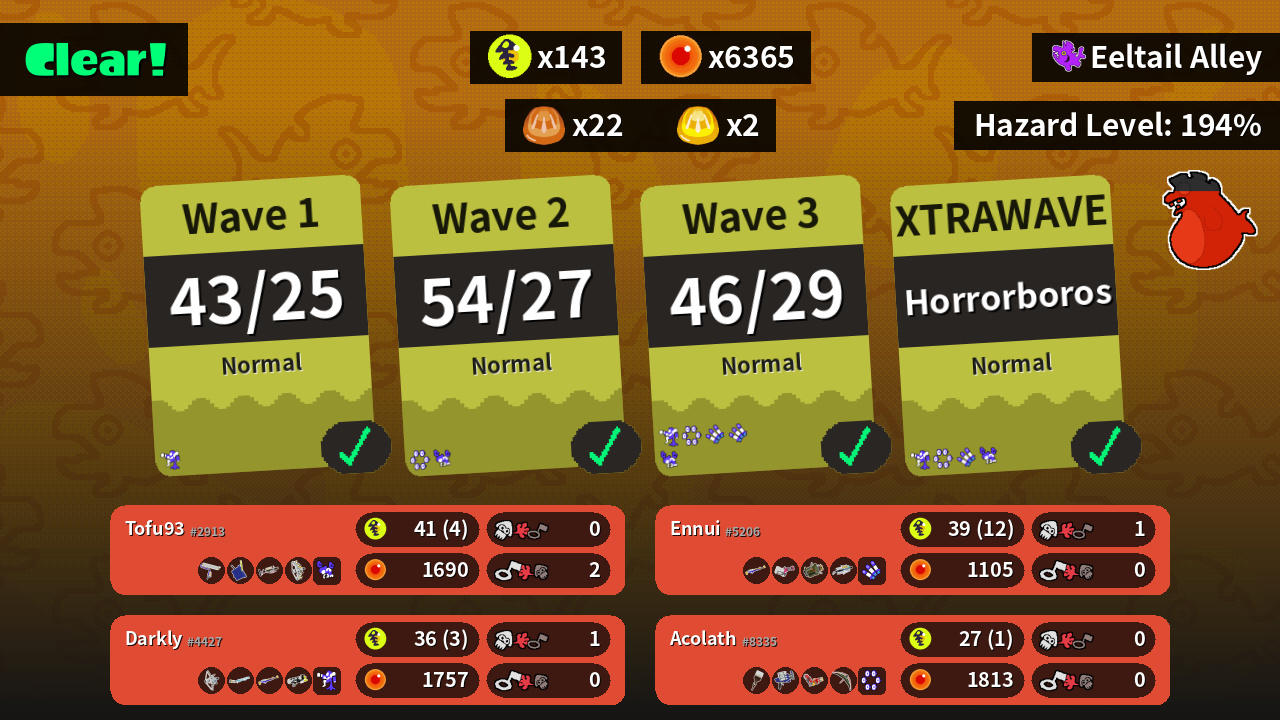 | Weapons | Splat Roller Tri-Slosher Grizzco Charger Grizzco Stringer | Splat Charger Heavy Splatling Explosher Grizzco Brella | Tri-Stringer Classic Squiffer Splat Charger Splattershot Nova | Octobrush Clash Blaster Hydra Splatling Tenta Brella |
