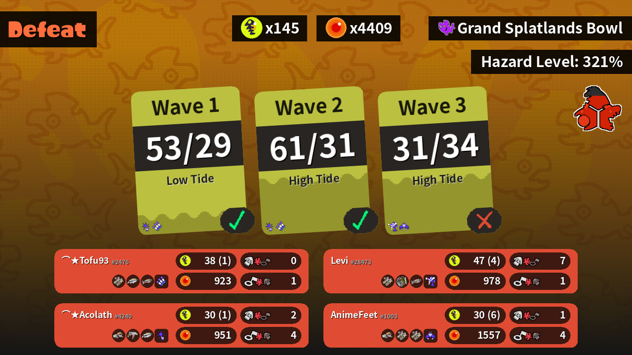 | Weapons | Grizzco Dualies Grizzco Brella Grizzco Charger | Grizzco Dualies Grizzco Slosher Grizzco Charger | Grizzco Blaster Grizzco Dualies Grizzco Dualies | Grizzco Blaster Grizzco Roller Grizzco Brella |