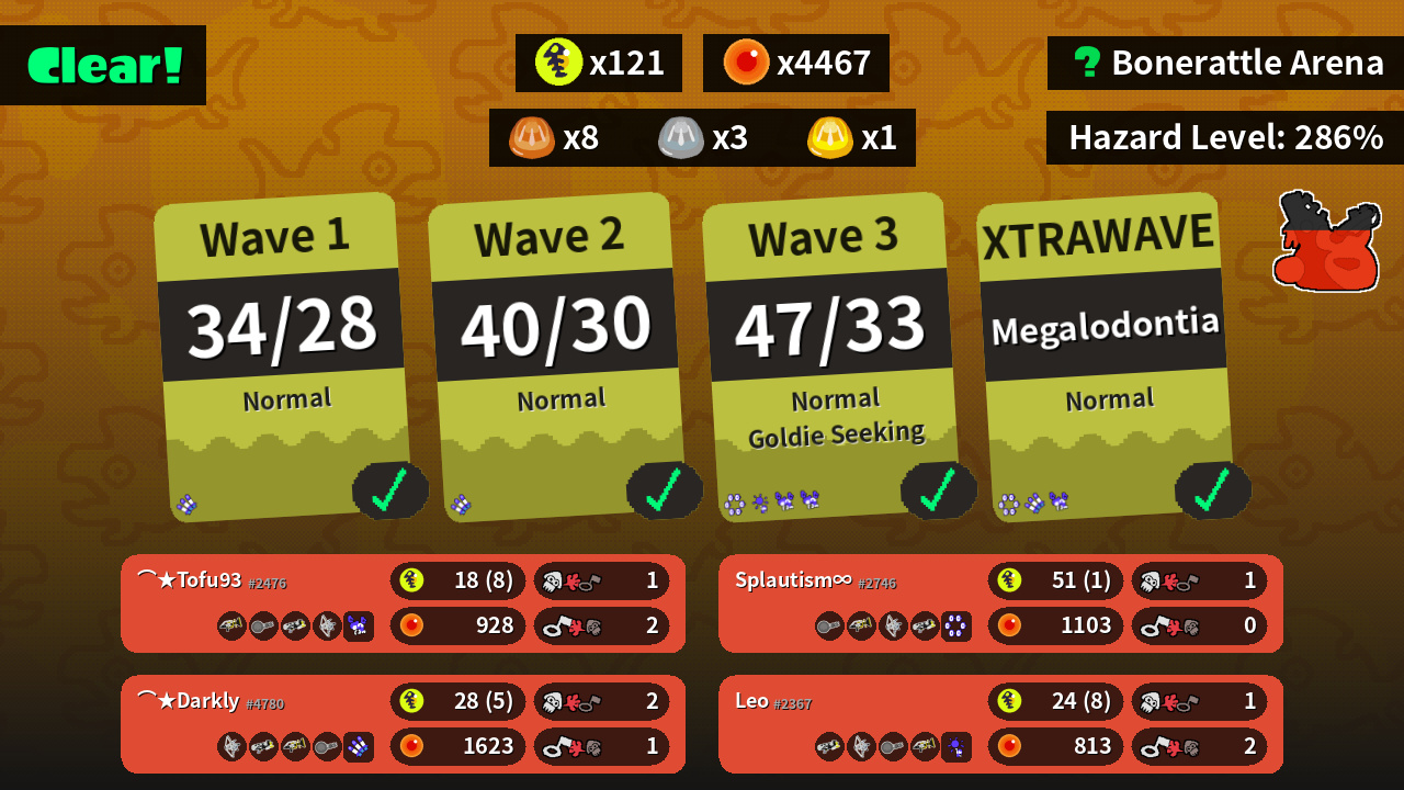| Weapons | Sploosh-o-matic Nautilus 47 Splattershot Nova Tri-Stringer | Nautilus 47 Sploosh-o-matic Tri-Stringer Splattershot Nova | Tri-Stringer Splattershot Nova Sploosh-o-matic Nautilus 47 | Splattershot Nova Tri-Stringer Nautilus 47 Sploosh-o-matic |