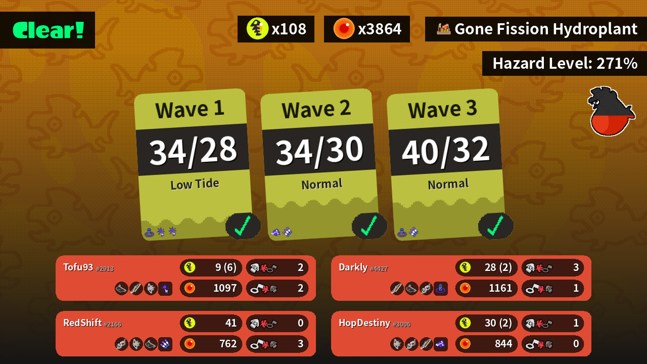 | Weapons | Bloblobber Splatana Wiper Tri-Stringer | Dark Tetra Dualies Tri-Stringer Bloblobber | Tri-Stringer Dark Tetra Dualies Splatana Wiper | Splatana Wiper Bloblobber Dark Tetra Dualies |