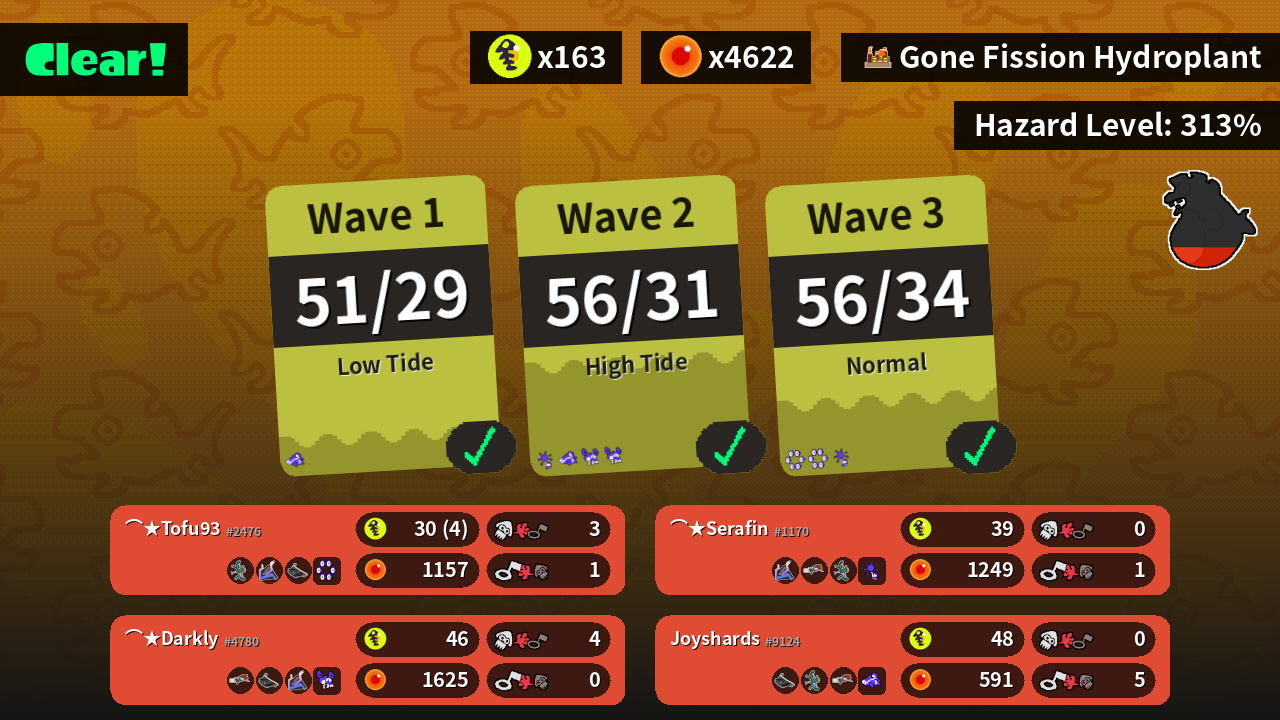| Weapons | Wellstring V Slosher Bloblobber | Bloblobber Wellstring V Range Blaster | Range Blaster Bloblobber Slosher | Slosher Range Blaster Wellstring V |